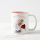 Este hermoso diseño ofrece una pintura de Teresa del santo con un color de rosa. El texto de Teresa del santo es esquema rosado. El interior de la taza es un rosa en colores pastel suave.