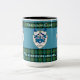 Taza del clan de Ferguson - con el escudo, el tartán y el lema "por fuerza y arte."