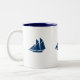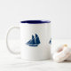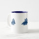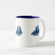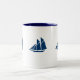 Taza de café mostrada en blanco/marina de guerra con el detalle lindo del velero. Modifique este artículo para requisitos particulares, usted puede elegir sus colores y estilo.
