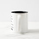 Taza de café personalizada de 444ml. ¡En cuanto a tamaño sólo puedo decir que enorme! pero es lo que esperaba así que estupendo. En el asa me entra la mano entera y no sólo tres dedos como me ocurría con las otras tazas. También comentar que es el tamaño que se ve en las series americanas, tanto para café como para infusión. En cuanto al acabado decir que es correcto, con poco tiempo de uso no puedo especificar mucho más. Pude escoger el nombre y el color pero no la tipografía, quizás esa elección pueda decidir a más gente. En términos generales y por el momento, buena opinión.