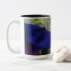 Imagen floral única en este dos-tono, 15 onzas. la taza es la vista lateral del wildflower rosado-púrpura de la correhuela que se arrastra a lo largo de una calzada con sus pals salvajes del arbusto y de la hierbabuena.