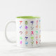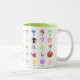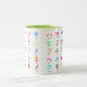 Taza blanca 11oz con los 46 símbolos japoneses de las katakanas. Pronunciación en alfabeto debajo de cada carácter.