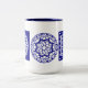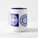 taza en dos colores con dibujos que imitan la talavera de puebla México