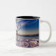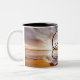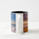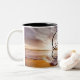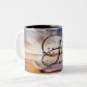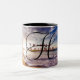 Un tazón de café fotográfico con tu nombre inicial se muestra con una escena de playa. Usa nuestro fondo o descarga una foto propia. HAMbyWhiteGlove alias HAMbWG.