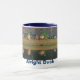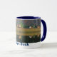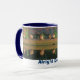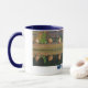 Compre esta taza de la diversión con imagen fotográfica de una fila de los patos que se colocan en el riverbank con reflexiones reflejadas en el agua abajo. Debajo de la foto es el texr "Duck bien"
