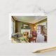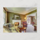 Tarjeta postal con el interior de la sala de estar y palabras Gracias.