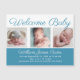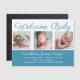 Bienvenida, bebé. Un clásico imán para el anuncio de la foto del nacimiento de un niño en azul ceruleano con una hermosa tipografía cursiva sobre tu dulce collage de fotografías de recién nacidos. Una preciosa tarjeta magnética de imagen infantil.
