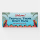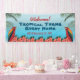 Bienvenida a evento temático tropical con pancarta