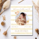 Comparte la noticia del nacimiento de tu bebé con este anuncio de "Bienvenidos al mundo" con fotos de niños con flores de franja amarilla. Personalizar con foto, fecha de nacimiento, peso, longitud y nombre de su bebé.