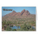 Deje su casa de alquiler aparte de su competencia y dé la bienvenida a sus huéspedes con esta tarjeta de bienvenida. Esta tarjeta de felicitación Phoenix, Arizona, es una manera económica de dar la bienvenida a sus huéspedes y hacerlos sentir como en casa. La foto captura las hermosas rocas rojas y el lago artificial que se encuentra en la ciudad de Phoenix. Las palmeras completan este paisaje de oasis del desierto. Todo el texto se puede personalizar de forma rápida y sencilla para satisfacer sus necesidades. Foto original - C. McGouldrick