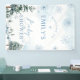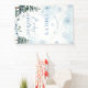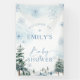 Pancarta de bienvenida para baby shower de invierno con copos de nieve azules y pinos.