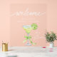 Bienvenidos a la despedida de soltera "Margs and Matrimony" con este elegante letrero de acrílico transparente. Cuenta con un delicioso vaso de margarita de acuarela con un lazo verde lima atado al tallo y "Bienvenidos" en letra manuscrita con florituras largas. Este letrero versátil es ideal para un caballete en la entrada, un centro de mesa de bienvenida o incluso apoyado en un carrito de bar para saludar a los invitados a medida que llegan. Personalízalo con el título y la fecha de tu evento para causar una impresión duradera. © Kimbellished, LLC