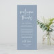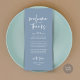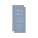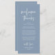 Comparte el amor y muestra tu aprecio a tus invitados, cuando se sientan en su asiento y leen esta encantadora y encantadora temática azul polvoriento como regalo de bienvenida y gracias. ¡Es una manera maravillosa de empezar tu celebración especial del día! Con esta tarjeta se establecerá el tono de un evento inolvidable. La tarjeta de agradecimiento incluye un tema de escritura de diseño moderno, añadiendo un toque de elegancia eterna a su celebración. Diseñado por TeeshaDerrick