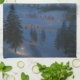 En esta escena de fantasía en una noche de invierno, un camino helado conduce entre nevadas por la colina y por el río a una acogedora cabaña con velas en la ventana. El camino y las piedras que atraviesan el agua están iluminadas por linternas cálidamente brillantes, y una hoguera al lado del camino envía chispas al aire frío de la noche.