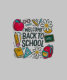 Un colorido y alegre diseño de regreso a la escuela con elementos clásicos de la escuela como libros, lápices, una manzana, una pizarra, margaritas y una mochila. El texto "Bienvenidos de vuelta a la escuela" capta la emoción de un nuevo año académico.