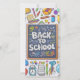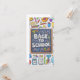 Los coloridos dibujos en línea de cañón de los utensilios escolares sobre un fondo claro le dan al alumno una cálida bienvenida. Los colores de los trazos le dan alegría y vitalidad a su día escolar, ya que le dan vida a cuadernos, lápices, reglas y mochilas. ¡Bienvenido de vuelta a la escuela!