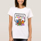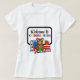 Esta es una linda camiseta para que un profesor de guardería se ponga el primer día de clase. El diseño es un osito de peluche lindo rodeado de material escolar con una pizarra electrónica detrás y las palabras "Bienvenidos a la guardería".