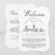 Una tarjeta de detalles exclusiva diseñada para tu boda que viaja para verte en la hermosa ciudad de Londres. Cuenta con un moderno ilustracion de estilo deco del horizonte de la ciudad en la parte delantera, seguido de espacios para su información única sobre el día de la boda en la parte trasera. Todos los elementos de este elemento están desbloqueados y ajustables a sus necesidades. Diviértete haciéndolo propio. Esta tarjeta de invitación forma parte de una colección más grande de más de 20 piezas con artículos hechos a la medida de antes, el día de y después de la ceremonia de boda. Algunos otros artículos que se pueden combinar con esto incluyen, etiquetas de regalo, fans y tarjetas de programa de boda, bolsos de invitados, refrigeradores de bebidas de bienvenida y más.