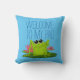 Esta adorable rana verde lima da la bienvenida a sus huéspedes a su "pad". Un bonito fondo azul cielo se puede modificar según tus preferencias de decoración. Acento humorístico en una residencia universitaria o nuevo apartamento, cuarto de adolescente o casa de playa.
