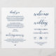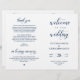 Esta es la tarjeta del programa de la ceremonia de boda plegable, en el tema de la elegancia de la Marina Azul. Está diseñado con acento de desplazamiento que puede ser personalizado con texto personalizado/ personalizado para su fiesta nupcial, detalles de la ceremonia, notas conmemorativas y mensaje de agradecimiento. ** Nota: estos programas de papel de peso de texto llegan planos y requieren plegado para ensamblar.
