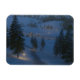 En esta escena de fantasía en una noche de invierno, un camino helado conduce entre nevadas por la colina y por el río a una acogedora cabaña con velas en la ventana. El camino y las piedras que atraviesan el agua están iluminadas por linternas cálidamente brillantes, y una hoguera al lado del camino envía chispas al aire frío de la noche.