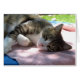 Esta carta dice, "Te amo", y muestra una fotografía de un adorable gato tabby llamado Big Boy. Big Boy está tumbado a su lado mientras se extiende sobre una mesa al aire libre para disfrutar de un poco de sombra. Este gato con su adorable rostro, ojos verdes, garras blancas y pececitas en la nariz hacen que esta carta sea simplemente irresistible para los amantes del gato.