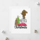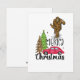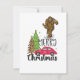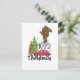 Tarjeta de Navidad de Bigfoot con árbol de Navidad alegre y coche rojo