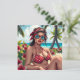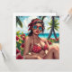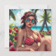 Cute beachy arte pop en blanco. Un lindo ilustracion de personalizado al estilo de un libro de historietas de una mujer con un puntito polka rojo bikini, bandana y gafas de sol.