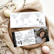 Billete boda de abono de invitación a bodas de destino blanco y negro, retrato de la pareja comprometida, un avión con un rastro de lazo y un personalizable fácil para este diseño de invitación. Recuerde mantener el texto en la parte posterior del monograma actualizado.