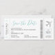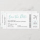 Tarjeta de Relieve metalizado de embarque Guarde las tarjetas de billete de avión de fecha con un elegante diseño moderno con un falso avión de plata con centro cardíaco, mostrado en azul verde azulado plateado y turquesa, pero todos los colores de texto, líneas y fondo son editables para que puedas crear tu propio diseño usando este modelo para un moderno pase de embarque de 80 o 90 que fue diseñado pensando en un boda de boda o viaje o cumpleaños. Visite la colección de diseñadores de Personalizado Paper Works para coordinar los artículos.