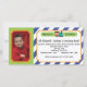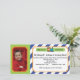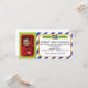 Sube la foto de tu hijo para crear una invitación al estilo de un boleto lindo. Estas invitaciones son perfectas para una fiesta de cumpleaños temática. El diseño combina el estilo de las entradas antiguas con un toque moderno de rayas diagonales azules y blancas. El motivo de la locomotora de vapor descansa en la parte superior. El tema del color es azul, verde y naranja, un saludo a los espectáculos de los dinosaurios y Thomas.