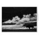 Temprano en la mañana, blanco y negro de un Bison alimentándose cerca de un estante de vapor en el Parque Yellowstone.