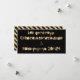 Feliz Navidad y Feliz Tipografía 2024 Elegante negro y oro, Relieve metalizado dorado falso texto y franjas, escritura moderna con copos de nieve, Navidades de Moda y tarjeta de Año Nuevo