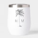 This coastal inspired monogrammed thermal wine tumbler features a preppy black palm palmetto tree on white with a monogram that you can personalize with your choice of initials on each side. Great for personalized gift bags and party favors.