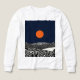 The work depicts a rural landscape with hills, cultivated fields and small dwellings, under a night sky with a moon or a large orange sun.