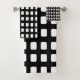 Juego de toallas de baño de diseño en las plazas blanca y negra.
