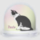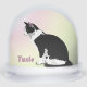 Personalize this snow globe with a pet's name, or any text and you can change the background on this design featuring original art of a black and white bicolored "Tuxedo" Cat. This original artwork of a tuxedo kitty was inspired by the artist's own cats.