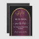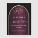Un magnético Guardar la tarjeta de fecha para una fiesta de cumpleaños número 50. Un fondo negro y burdeos, decorado con un arco dorado falso. Personalice y agregue una fecha y su nombre. El texto: Fifty y Save the Date está escrito con un gran guión de moda a mano.