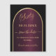 Un magnético Guardar la tarjeta de fecha para una fiesta de cumpleaños número 60. Un fondo negro y burdeos, decorado con un arco dorado falso. Personalice y agregue una fecha y su nombre. El texto: Sixty y Save the Date se escribe con un gran guión a la moda de estilo con letras a mano.