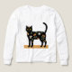 The image shows an illustration of a black cat in an artistic and decorative style: