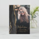 Esta moderna invitación de graduación de 2025 cuenta con una acuarela negra en la frontera geodal con falsos purpurinas de oro. El primer nombre del graduado aparece como un elegante guión de escritura a mano de color dorado sobre una foto vertical, junto con el apellido, la escuela y el año de clase en letra de copperplate. Un filtro de degradado negro ayuda a la ventana emergente de texto. Una segunda foto horizontal aparece en la parte de atrás, junto con la invitación y los detalles en un texto de color dorado sobre un fondo oscuro de color negro oscuro.