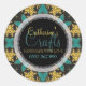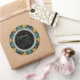 Elegante negro y dorado con elegantes Pegatinas de personalizable redondo de diseño verde azulado, de inspiración bohemia oriental, con texto de personalizable completo, pegatinas redondos de productos para sus artesanías, pequeñas empresas o muchas otras posibilidades. Se puede poner en productos, jarras, sobres o usar como medios publicitarios/de marketing. Todos aman a los pegatinas. ¡Difundan la palabra sobre su negocio! ¿Como mis diseños y arte?