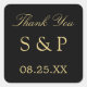 Pegatina de Gracias de la Boda Dorada Negra de Beige Dorado, por favor, personaliza con las iniciales de la pareja y la fecha del boda, usando la plantilla de personalización en línea antes de hacer el pedido. El pegatina presenta un texto elegante en un tono dorado de beige (falso dorado / dorado) sobre negro clásico.