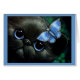 BLACK KITTEN CAT WITH BLUE BUTTERFLY CARD