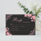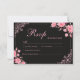 This RSVP card features soft pink flowers on a black background, perfectly matching the black and pink floral wedding invitation. The floral design adds a gentle and romantic touch while keeping the look modern and clean. The simple layout makes it easy for guests to respond and share their details. It completes the black and pink floral wedding suite with a coordinated and stylish finish.