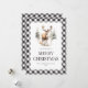 Bolas de búfalo blancas y negras. Tarjeta navideña con una acuarela en un bosque. Personalice fácilmente esta tarjeta de vacaciones con su nombre familiar y el año.