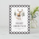 Black White Plaid Watercolor Deer Feliz Navidad