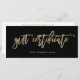 This stylish, modern gift certificate features a dark black background, with trendy faux gold handwritten script typography.