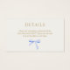 Estas encantadoras tarjetas de gabinete de detalles de boda blanco y negro incluyen los detalles de su sitio web y el código QR para ayudar a los huéspedes. La plantilla incluye texto personalizado de moda en color oro falso. El moderno ilustracion azul de la cinta permite disfrutar de un tono alegre y de una elegancia juvenil. Dos iniciales al lado de atrás.