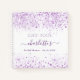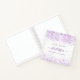 Un elegante fondo blanco con chispas de imitación violeta y lavanda. Agregue un nombre y un texto. El nombre está escrito con un guión moderno de estilo con letras a mano con toques. Para que los cambios sólo eliminen el nombre del ejemplo, deje los espacios o la emoji delante y después del nombre.